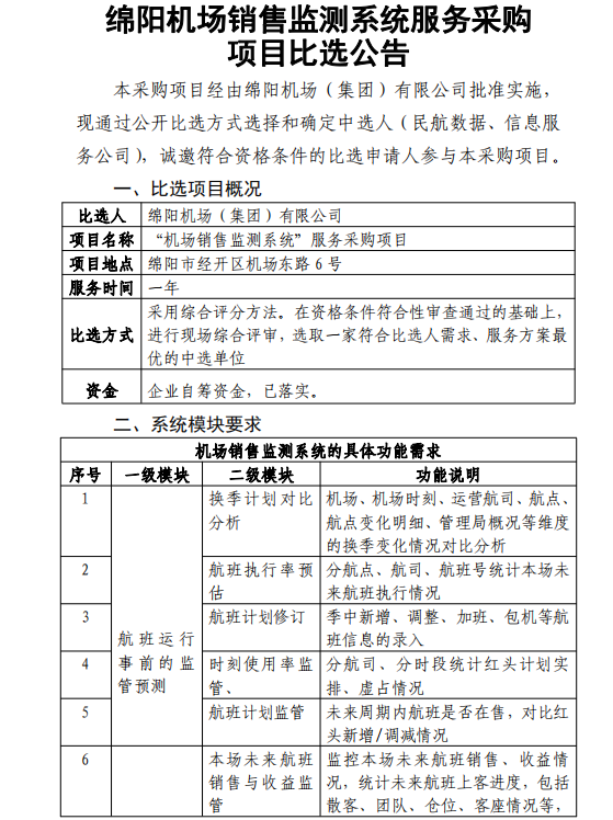 綿陽機(jī)場(chǎng)銷售監(jiān)測(cè)系統(tǒng)服務(wù)采購項(xiàng)目比選公告