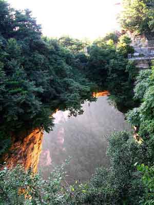 | 上午 | 酒店出發(fā)赴索溪峪門票站進入景區(qū),可乘天下第一梯—百龍電梯(72元/人)到達(dá)【袁家界景區(qū)】: 袁家界是張家界的核心景觀和精品游覽線,袁家界風(fēng)景以雄、奇、險、峻著稱,在十多華里的環(huán)山游道上,沿途景色美不勝數(shù),其中可觀賞到:電影《阿凡達(dá)》中“哈利路亞山”原型“乾坤柱”、迄今為止發(fā)現(xiàn)落差最高的天然石橋—天下第一橋、九天玄梯、八卦圖、猿人望月、拜仙臺等景點。 |